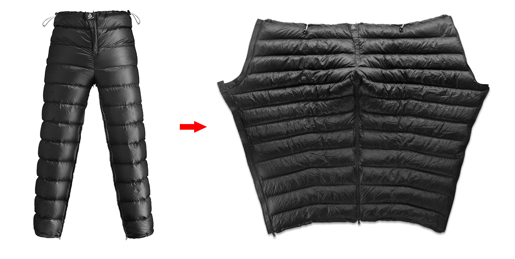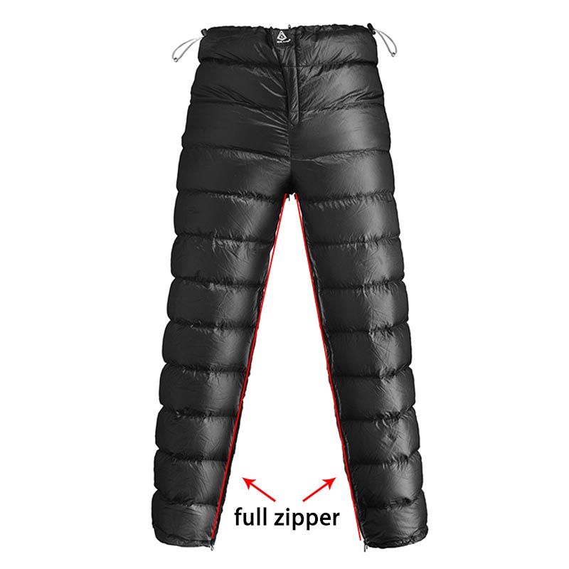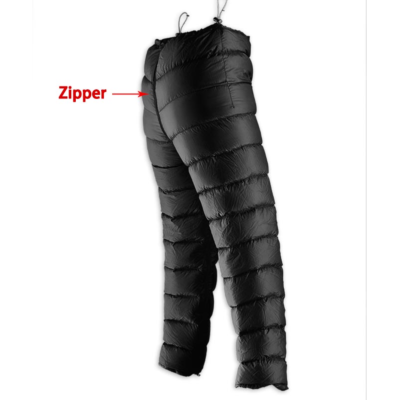 With the full side zipper, our down pants can transform into a small down blanket, which can also be used as an additional layer for sleeping bags in cold weather.
